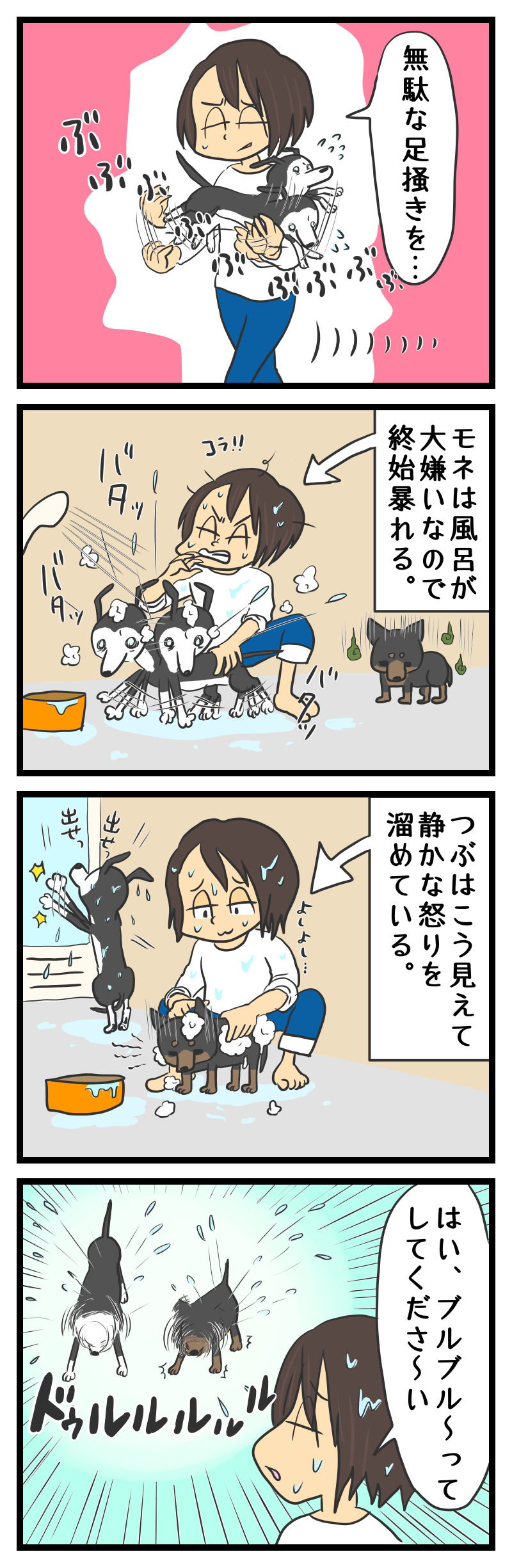 私も以前犬を飼ってましたがお風呂のあとは毎回暴れてました
